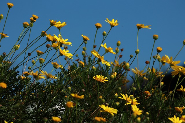 サロンの入り口のマーガレットは満開。見頃です。