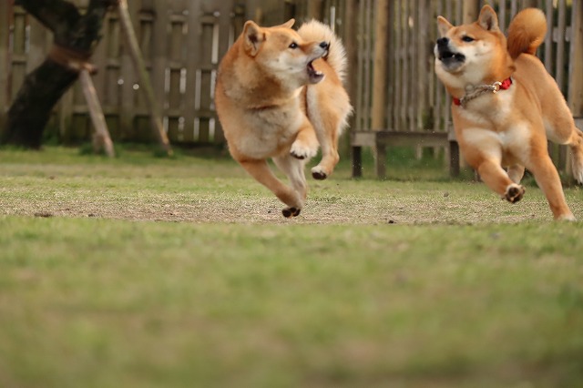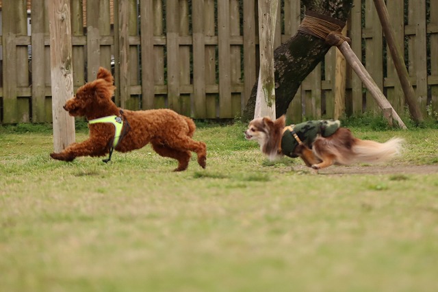 雨の中のじゃれじゃれ~ どろんこだぁね