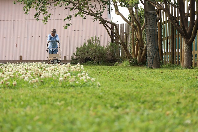 ボチボチ刈っとかないと、芝生が負けてしまいますものね。