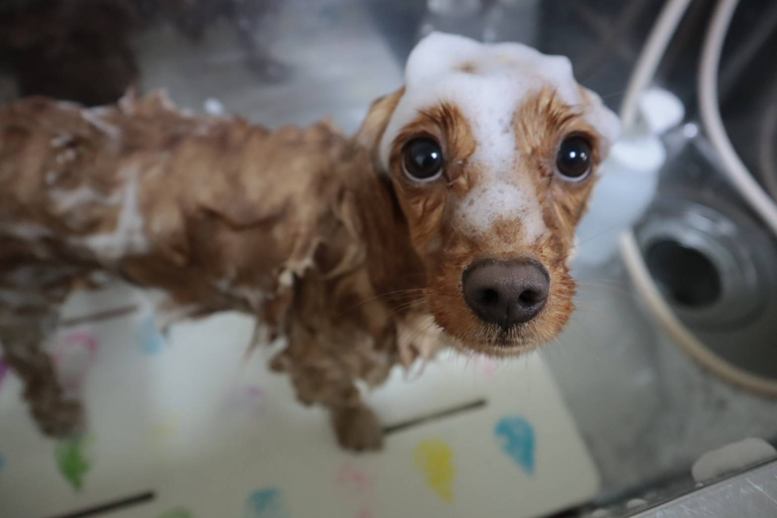 コアくんシャンプー中もジッと見つめてくれます☺️