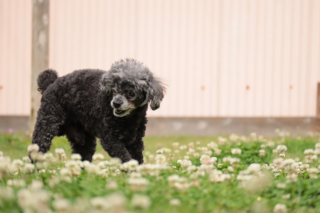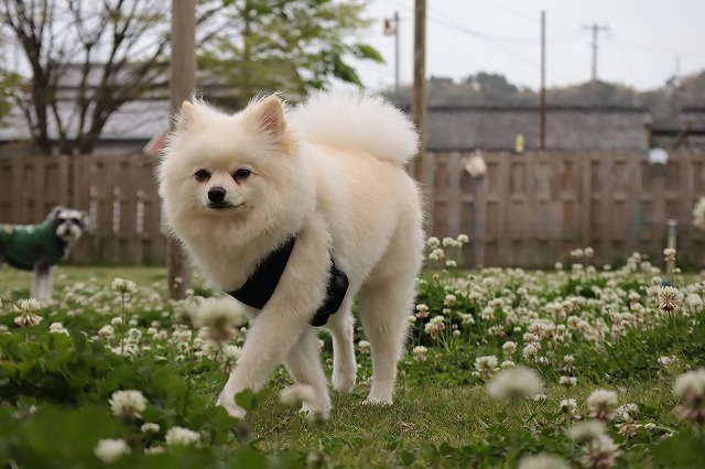 チロルちゃんもお花畑の中