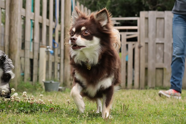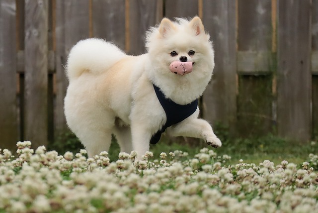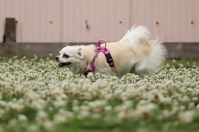 お花畑を爆走! 大福ちゃん
