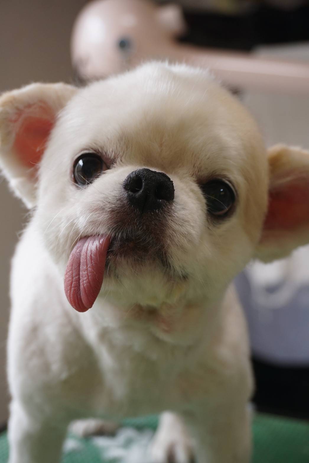サロンに来たら、ママにガッシリ掴まったまま目を合わせまいとプイッ!ってするのがかわいいちょこらちゃんです😆