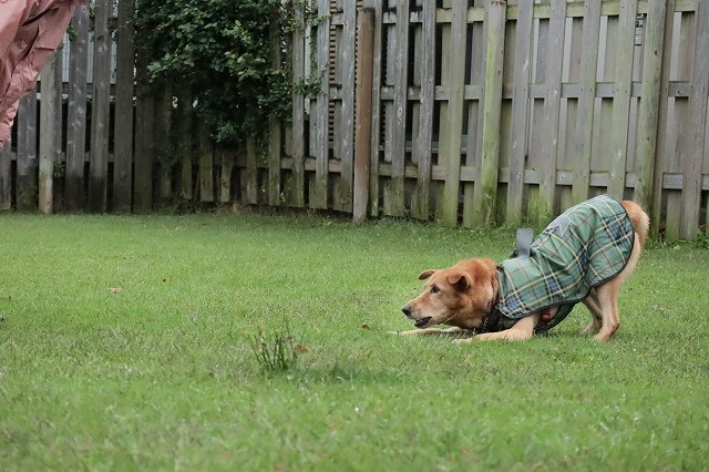雨の中 テオくん