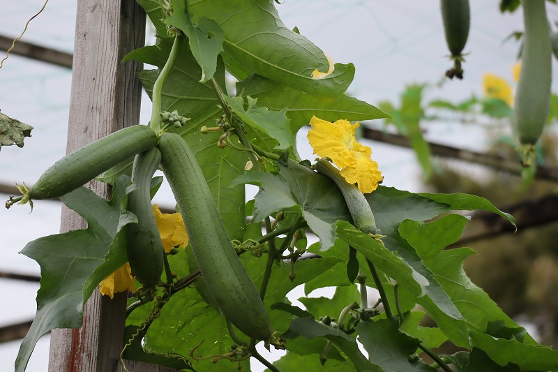 ヘチマが鈴なりに生っています。食べたい方、使いたい方はご遠慮なくお申し付けください