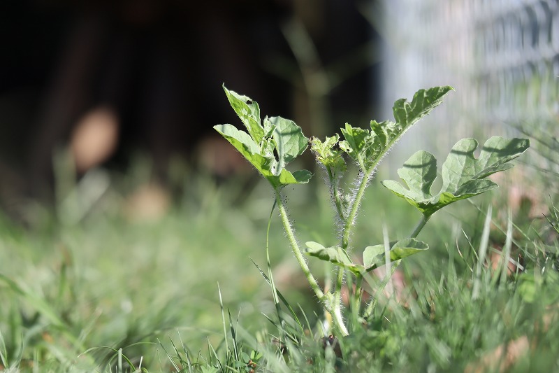 夏に食べたスイカから芽が出ています。誰か掘り起こして温室で育ててみませんか?