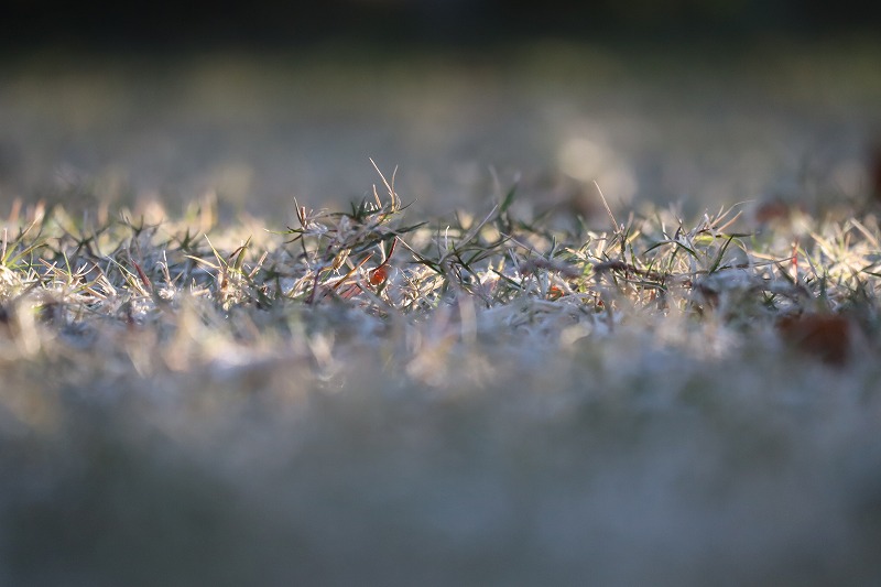 冷たいと思っていたら芝が白く光っていました。