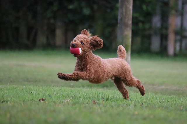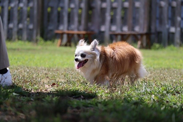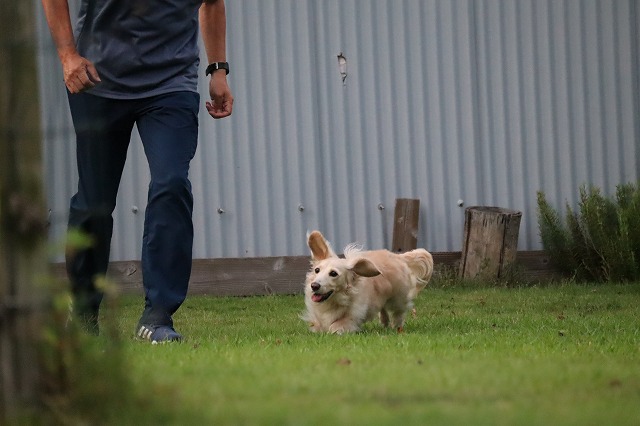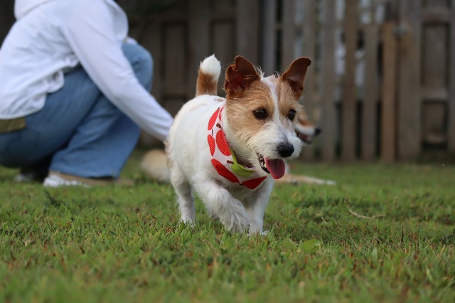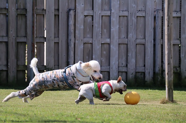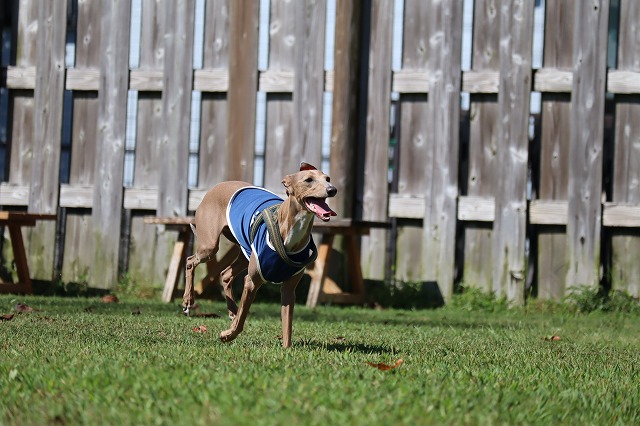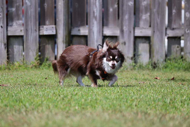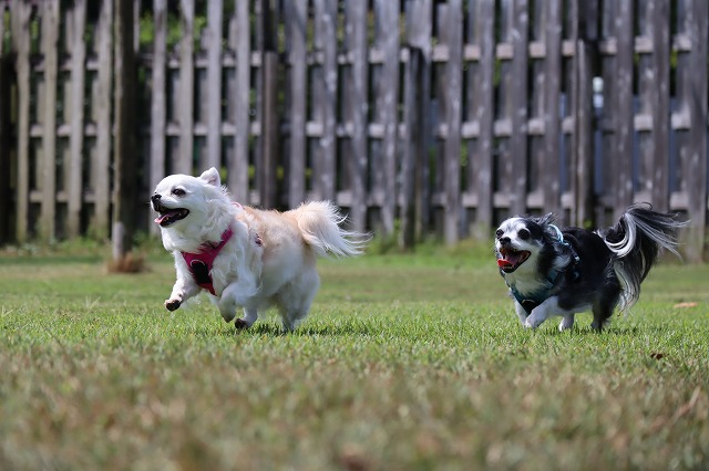 少し涼しいとよく走ります。楽しくなっちゃうね。もう少し寒いともっと動きます。夏太りのワンコさんはソロソロ運動量を増やしてみませんか?